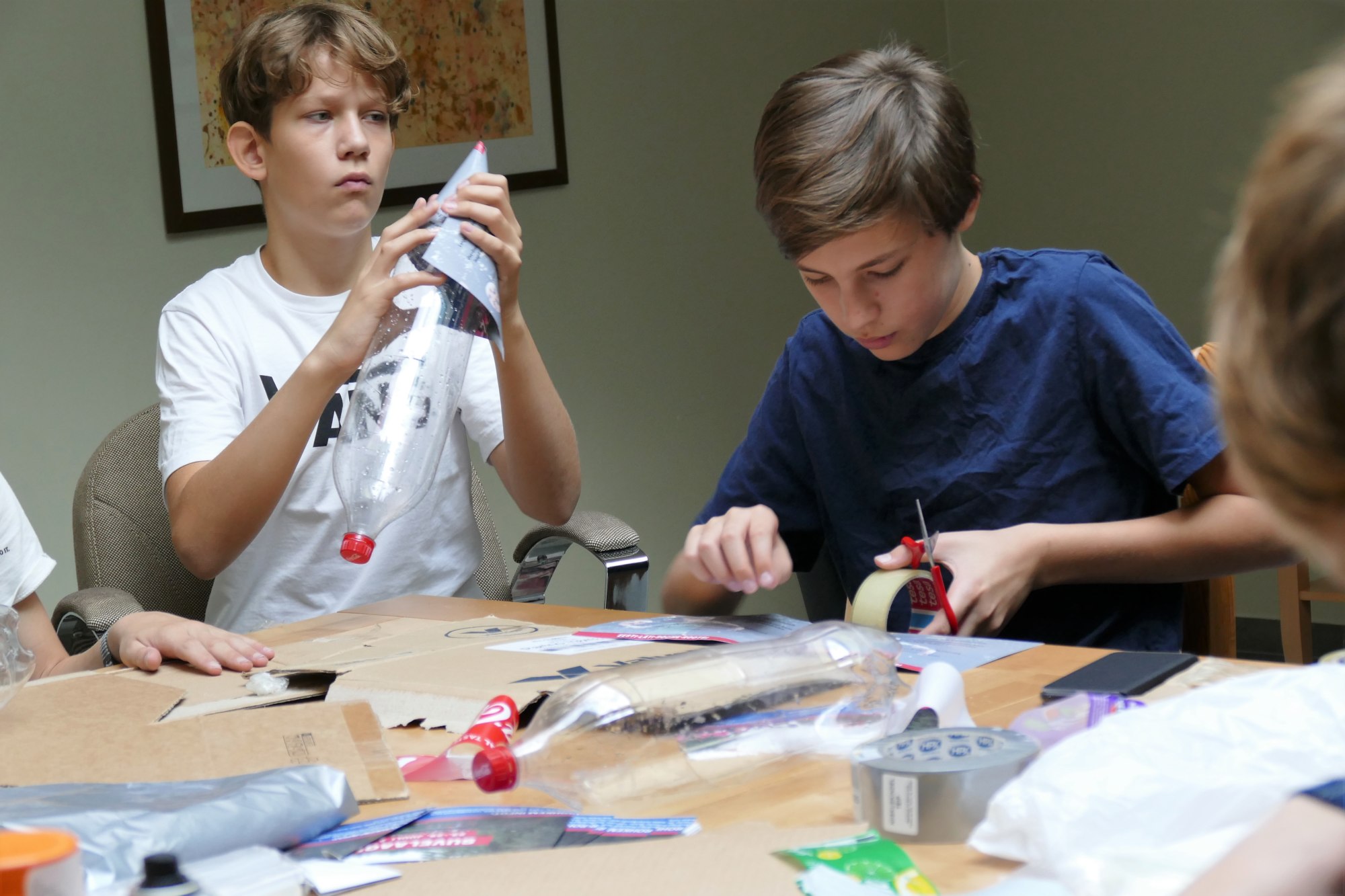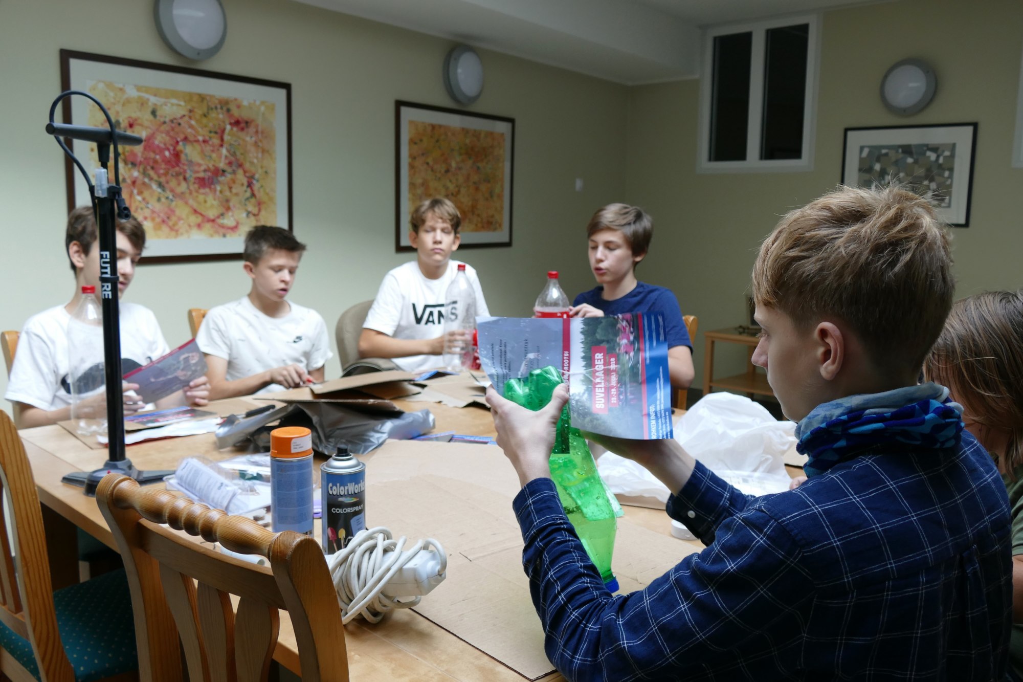 Vanemate poistega tegime karastusjookide pudelite abil valmis vee rakette. Iga üks aitas rakettide valmistamisel kaasa, et hiljem need maja tagaaias proovile panna. Mõni rakett isegi lendas majast kõrgemale!